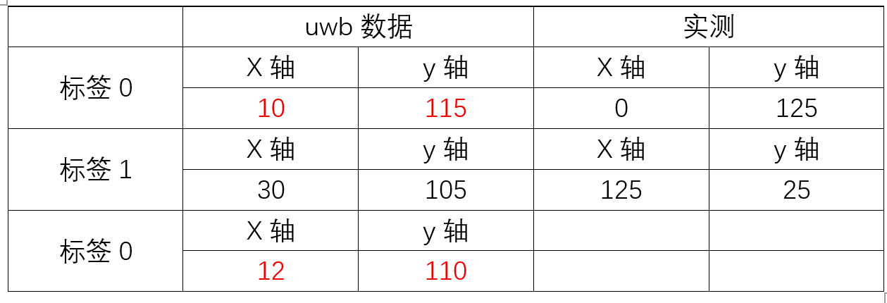 将标签1放置在标签0 附近10cm位置,标签0的数据变化微小 uwb选择二维定位模式,当标签处于基站所在平面下方63cm时,定位数据变化明显