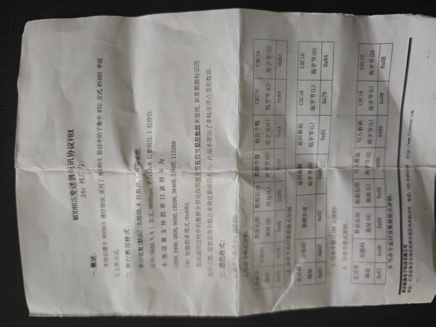 气压传感器协议手册