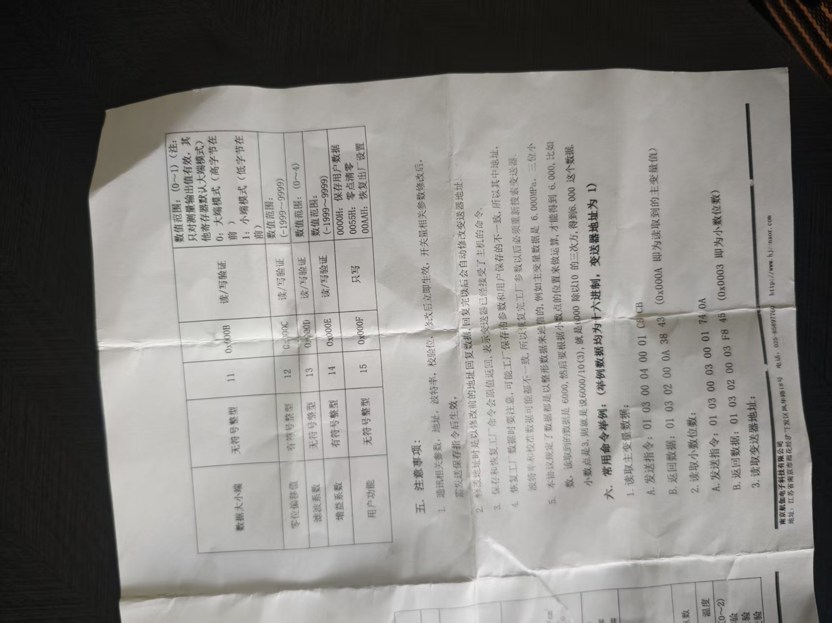 气压传感器协议手册